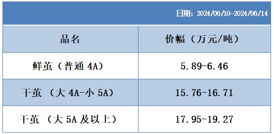 根據(jù)本周蠶繭報價按照指數(shù)方案形成的基準品價格區(qū)間