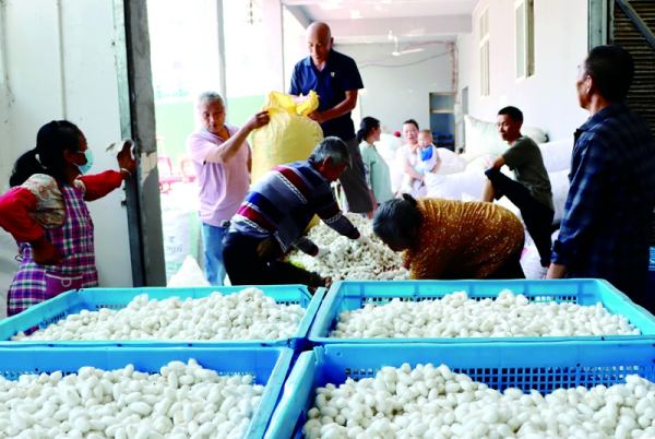 6月14日,重慶市黔江區(qū)首批春繭開秤收購(gòu),廣大蠶農(nóng)喜迎一年桑蠶生產(chǎn)“開門紅”,喜獲第一桶“蠶金”。