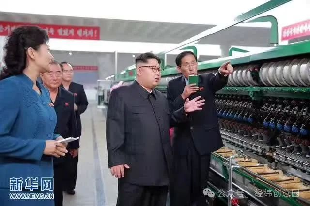 2017年4月,朝鮮領(lǐng)導(dǎo)人金正恩視察平壤絲綢廠的自動(dòng)繅絲機(jī)生產(chǎn)線