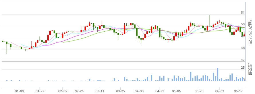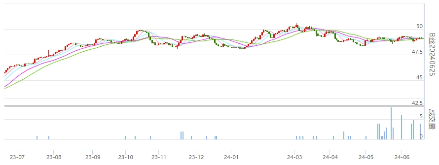 今日(2024年06月20日,周四)中國繭絲綢交易市場生絲電子指數(shù)微漲0.08%報(bào)于4900.50點(diǎn)。B絲(商檢4A級生絲):240625合約報(bào)平收于49.14萬元;240925合約上漲0.21萬元報(bào)收于48.72萬元;250325合約上漲0.12萬元報(bào)收于49.29萬元。