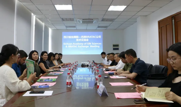 2024年6月19日,巴西絲綢協(xié)會(huì)會(huì)長、BRATAC公司首席執(zhí)行官Renata Amano帶領(lǐng)公司業(yè)務(wù)骨干一行5人,在國際絲綢聯(lián)盟副秘書長卞幸兒、秘書劉雙雙陪同下,到四川省絲綢科學(xué)研究院考察交流。