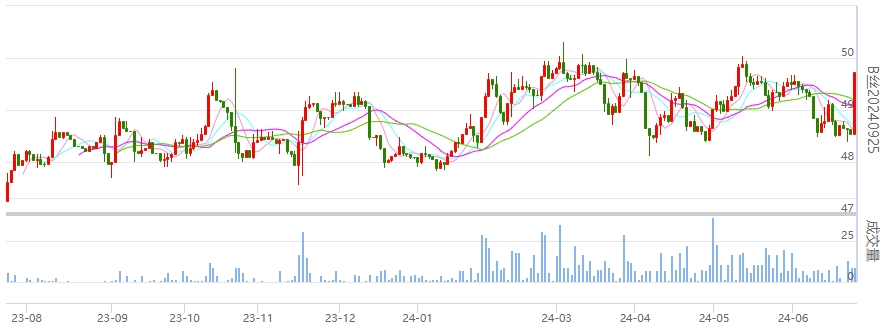 今日(周三)生絲盤面在商務(wù)部發(fā)布關(guān)于2024年中央儲(chǔ)備生絲收儲(chǔ)的公告的強(qiáng)勁刺激下,各遠(yuǎn)近合約價(jià)格均大幅上漲,主力240925和250325生絲合約均以漲停報(bào)收。現(xiàn)貨面上,據(jù)了解,部分絲廠以昨日商定價(jià)格繼續(xù)成交走貨,部分絲廠今日順勢(shì)提高報(bào)價(jià),一般在每噸2000-5000元之間,部分絲廠保持觀望。同時(shí)有絲廠反映,目前正處于銷售偏淡季,生絲詢價(jià)仍不積極。廣西蠶繭上市上,目前處于春夏繭上市期,繼續(xù)暴雨天氣,繭潮濕質(zhì)量不太好,車速慢,絲廠搶購(gòu)欲望低,今日反映收繭暫時(shí)沒(méi)有變化,部分絲廠繼續(xù)停收。