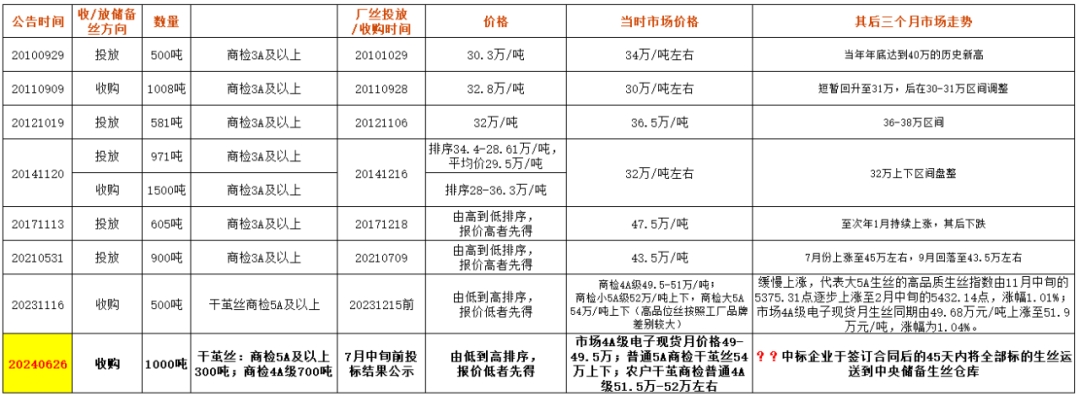 本次中央收儲(chǔ),是直接從事繅絲生產(chǎn)加工,具有穩(wěn)定的原料來(lái)源和規(guī)模生產(chǎn)能力,生絲年產(chǎn)能200噸以上的企業(yè),敬請(qǐng)關(guān)注。