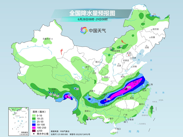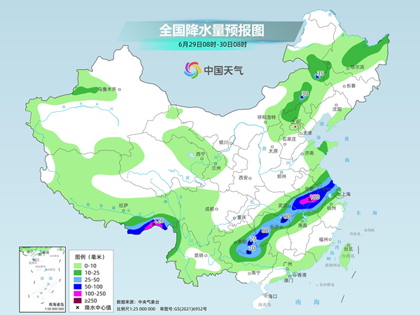 后天,內(nèi)蒙古東南部、西藏東南部、蘇皖南部、上海、浙江北部和西部、江西北部、湖北東部、湖南中北部、貴州東南部、廣西北部等地部分地區(qū)有大到暴雨,其中,安徽南部、江蘇南部、湖北東部、湖南西南部、江西北部、貴州東南部和中部、廣西北部等地部分地區(qū)有大暴雨(100~200毫米)。