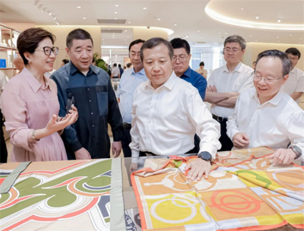 6月17日下午,住浙全國政協(xié)委員召集人、浙江省政協(xié)主席廉毅敏帶隊(duì),20多位住浙全國政協(xié)委員圍繞“大力推進(jìn)科技創(chuàng)新,加快發(fā)展新質(zhì)生產(chǎn)力”主題,走進(jìn)萬事利科創(chuàng)中心,實(shí)地感受歷史經(jīng)典絲綢產(chǎn)業(yè)加快發(fā)展新質(zhì)生產(chǎn)力的可喜成就。