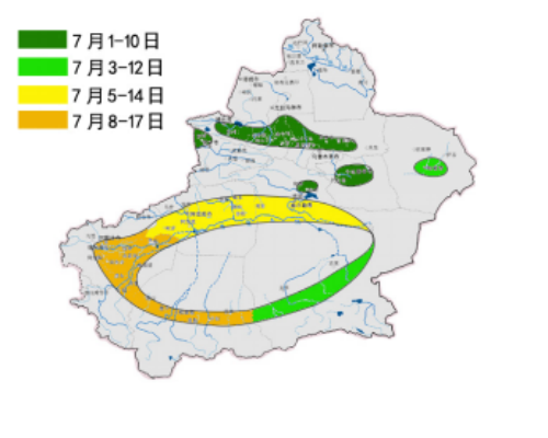 摘要:綜合考慮全疆棉花目前發(fā)育進程、長勢和后期氣候預測,預計2024年全疆棉區(qū)棉花適宜打頂期接近常年,其中北疆大部棉區(qū)、吐魯番市棉區(qū)、焉耆盆地棉區(qū)在7月1日至10日,哈密市棉區(qū)、巴州南部棉區(qū)在7月3日至12日,巴州北部庫尉輪棉區(qū)、阿克蘇棉區(qū)在7月5至14日,南疆西部棉區(qū)在7月8日至17日。