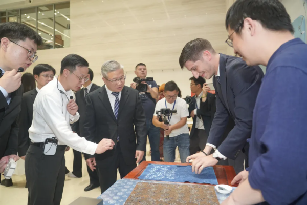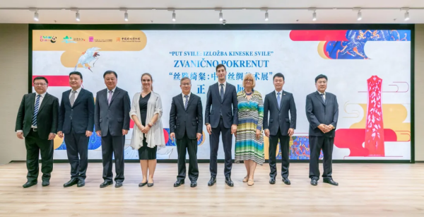 活動中,徐文光常務(wù)副省長、拉夫·帕依基奇國務(wù)秘書、米娜·齊羅耶維奇助理部長等嘉賓共同上臺為“絲路綺粲:中國絲綢藝術(shù)展”啟幕。