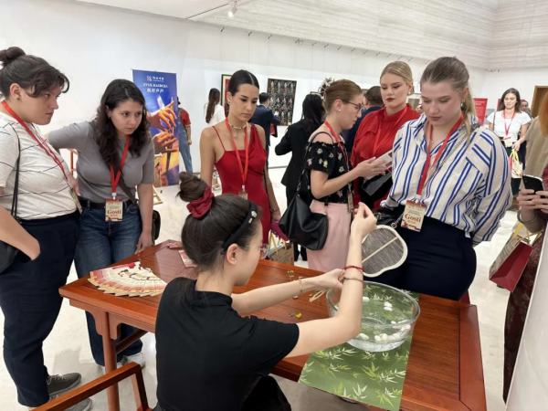 出席開幕式的嘉賓參觀了“絲路綺粲”展覽,并參與“陌桑中國”展演互動體驗,給予肯定和贊揚。貝爾格萊德當(dāng)?shù)赜^眾十分熱情,表示要讓更多的朋友來觀看展覽和體驗蠶桑非遺。一位外國駐塞爾維亞使館工作人員觀展后表示,十分驕傲地告訴貝爾格萊德中國文化中心負(fù)責(zé)人,中國的文化藝術(shù)很精彩,要送孩子去中國留學(xué)。