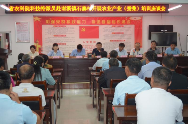 6月28日,家蠶種質(zhì)資源庫建設與創(chuàng)新團隊黃德輝研究員、秦鳳主任及石涼副研究員,應邀前往金寨縣南溪鎮(zhèn)開展“三區(qū)”人才科技特派員農(nóng)業(yè)(蠶桑)生產(chǎn)技術(shù)培訓活動。金寨縣農(nóng)業(yè)產(chǎn)業(yè)發(fā)展中心孫鳳柱主任、南溪鎮(zhèn)人大主席張家富、南溪鎮(zhèn)農(nóng)業(yè)農(nóng)村管理服務中心汪龍主任、當?shù)卮甯刹俊⑿Q??萍既藛T和蠶農(nóng)等參加了培訓。
