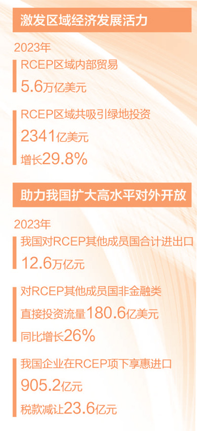 進(jìn)口關(guān)稅減讓收獲真金白銀。2023年,我國(guó)企業(yè)在RCEP項(xiàng)下享惠進(jìn)口905.2億元,稅款減讓達(dá)到23.6億元。