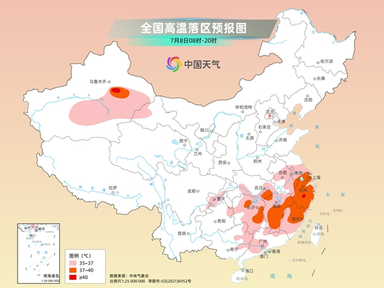 在副熱帶高壓控制之下,昨天江南、華南等地出現(xiàn)了大范圍高溫,其中浙江麗水局地氣溫甚至達到40℃以上。