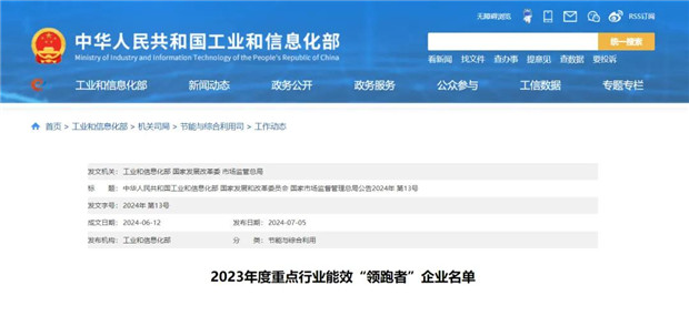 多家印染企業(yè)入選國家工信部、發(fā)改委、市場監(jiān)督管理總局2023年度重點行業(yè)能效“領(lǐng)跑者”企業(yè)名單