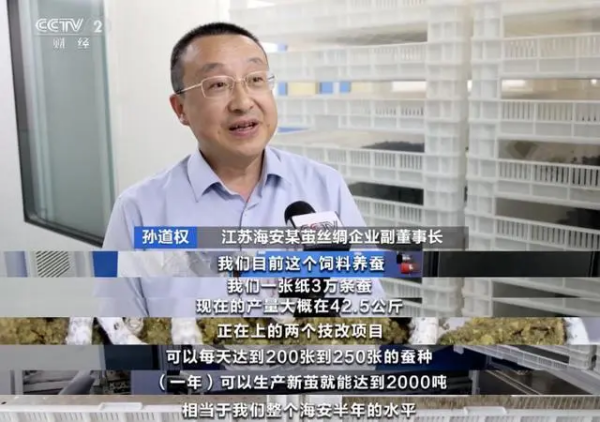 江蘇海安被稱為“中國繭絲綢之鄉(xiāng)”,記者來到海安了解到,今年的春繭收購工作在6月中旬結(jié)束。由于養(yǎng)殖技術(shù)提升,今年蠶繭的單產(chǎn)創(chuàng)下歷史新高,收購價(jià)也比去年上漲11%。