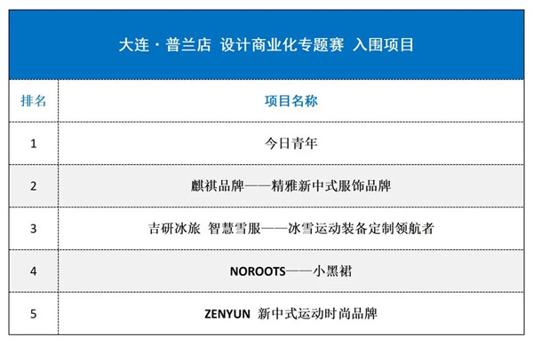 經(jīng)評委現(xiàn)場評審并綜合推薦,以下5個參賽項(xiàng)目從大連普蘭店設(shè)計(jì)商業(yè)化專題賽中脫穎而出,獲得“雙創(chuàng)優(yōu)勝獎”,并晉級大賽總決賽。大賽組委會現(xiàn)將晉級項(xiàng)目予以通告: