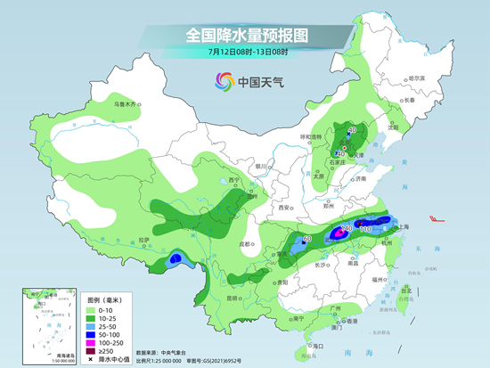 明天,江淮等地雨勢有所減弱,預計青藏高原東部、云南北部、華北東部、江漢、江淮、江南北部、重慶中東部等地部分地區(qū)有中到大雨,其中,西藏東南部、河南東南部、安徽中部、江蘇南部、湖北東北部和西南部等地部分地區(qū)有暴雨或大暴雨。