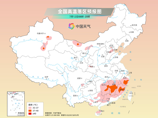 氣溫方面,今明兩天由于副熱帶高壓東退減弱,高溫主要集中在江南、華南一帶,強度也相對較弱。中央氣象臺今早繼續(xù)發(fā)布高溫黃色預(yù)警,預(yù)計今天白天,湖南中南部和東部、江西、浙江大部、福建、廣西東部、廣東中北部以及新疆東部、內(nèi)蒙古西部、河北中部等地有35℃以上高溫天氣;其中,新疆東部、湖南東南部、江西中南部、浙江南部、福建中東部等地的部分地區(qū)最高氣溫可達37至39℃。