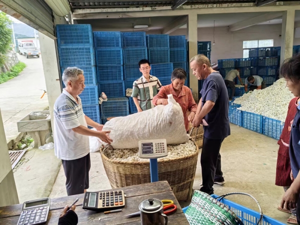 安徽聯(lián)豐制絲公司來榜蠶繭收購點,蠶農(nóng)們把一袋袋春繭陸續(xù)搬運到這里售賣,工作人員對蠶繭進(jìn)行評繭、稱重、登記、發(fā)款,一顆顆雪白的蠶繭換成了一張張嶄新的鈔票,蠶農(nóng)們臉上洋溢著豐收的喜悅。現(xiàn)場村民說種桑養(yǎng)蠶是個好產(chǎn)業(yè),他家這批養(yǎng)了2張蠶種,忙了半個月左右時間,蠶繭收入達(dá)到7000元,不僅增加收入,還可以方便照顧家中老人。