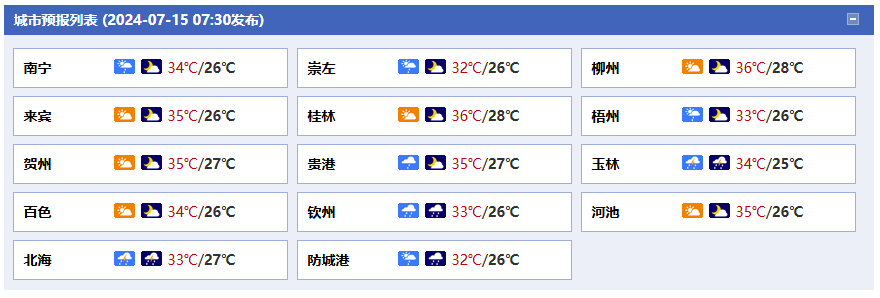 廣西氣象臺(tái)15日05時(shí)發(fā)布預(yù)報(bào):