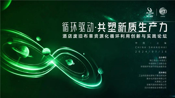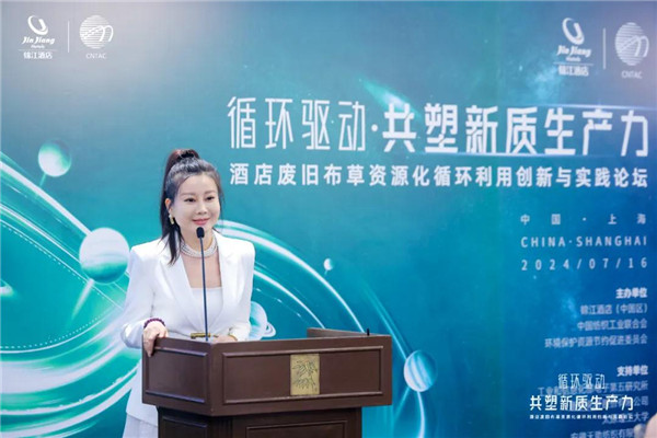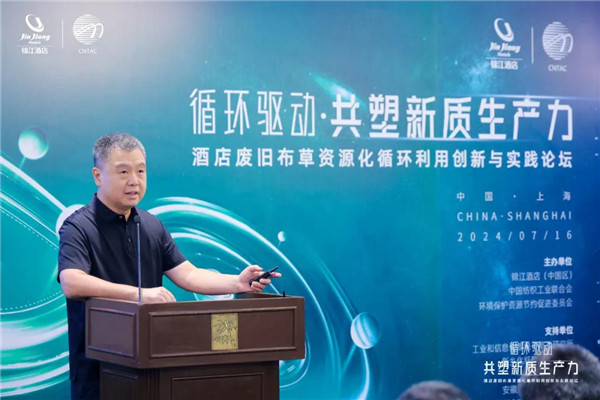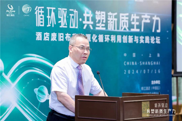 為加快推動(dòng)酒店廢舊布草資源循環(huán)的產(chǎn)業(yè)化、規(guī)?;褪袌?chǎng)化,匯聚更多創(chuàng)新力量,共“碳”多元共贏新模式,7月16日,以“循環(huán)驅(qū)動(dòng) 共塑新質(zhì)生產(chǎn)力”為主題的“酒店廢舊布草資源化循環(huán)利用創(chuàng)新與實(shí)踐論壇”在上海舉辦。會(huì)上,中國(guó)紡織工業(yè)聯(lián)合會(huì)副秘書(shū)長(zhǎng)、中國(guó)紡織工業(yè)聯(lián)合會(huì)產(chǎn)業(yè)經(jīng)濟(jì)研究院院長(zhǎng)華珊,上海錦江國(guó)際酒店股份有限公司首席執(zhí)行官毛嘯,錦江酒店(中國(guó)區(qū))首席執(zhí)行官王偉,錦江酒店(中國(guó)區(qū))品牌發(fā)展中心高級(jí)副總裁張中皓,四川合瑞佳實(shí)業(yè)有限公司董事長(zhǎng)劉浩宇,新鄉(xiāng)化纖股份有限公司總工程師謝躍亭共同啟動(dòng)酒店廢舊布草資源化循環(huán)利用規(guī)模化推廣項(xiàng)目。