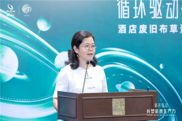 中國(guó)紡織工業(yè)聯(lián)合會(huì)副秘書(shū)長(zhǎng)、中國(guó)紡織工業(yè)聯(lián)合會(huì)產(chǎn)業(yè)經(jīng)濟(jì)研究院院長(zhǎng)華珊致辭時(shí)指出,中國(guó)紡聯(lián)環(huán)資委與錦江酒店從共同發(fā)起“酒店廢舊布草資源化利用倡議”,到完成酒店廢舊布草資源化利用基礎(chǔ)性研究和產(chǎn)業(yè)試點(diǎn)歷時(shí)兩年多的時(shí)間,通過(guò)產(chǎn)業(yè)試點(diǎn)對(duì)廢舊布草的循環(huán)路徑的技術(shù)可行性、經(jīng)濟(jì)可行性、環(huán)境效益進(jìn)行了綜合分析和可行性論證。目前,該項(xiàng)目已經(jīng)進(jìn)入千噸級(jí)中試階段,取得了階段性成果,為廢舊紡織品循環(huán)利用探索出了一條可持續(xù)發(fā)展新路徑,未來(lái)在錦江酒店以及其他酒店的示范引領(lǐng)下,必將帶動(dòng)更大產(chǎn)量和規(guī)模,因此擴(kuò)大技術(shù)的應(yīng)用面勢(shì)在必行,未來(lái)可期。她希望以此次會(huì)議為契機(jī),能進(jìn)一步拓展回收渠道,完善循環(huán)技術(shù),加大綠色產(chǎn)品設(shè)計(jì),引領(lǐng)綠色低碳生活方式,將廢舊布草的循環(huán)利用項(xiàng)目推向市場(chǎng)化應(yīng)用層面,為紡織行業(yè)的綠色發(fā)展作出更大貢獻(xiàn)。