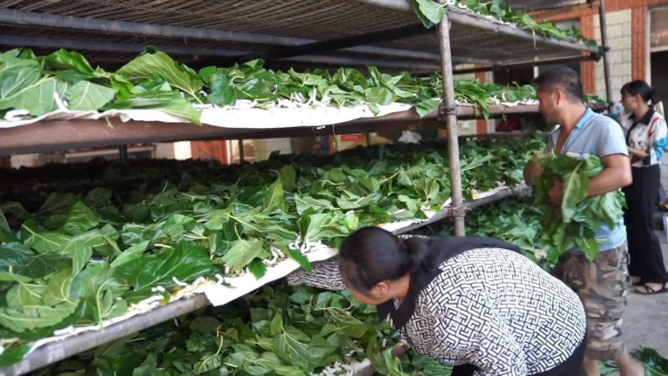 在永仁縣維的鄉(xiāng)維的村查苴組,成片的桑園長得郁郁蔥蔥,肥嫩的桑葉掛滿枝頭,蠶農(nóng)們正在忙著采摘。養(yǎng)蠶大戶毛向明一家已經(jīng)種桑養(yǎng)蠶17年,家里的桑園面積達到了40畝,每年他可以養(yǎng)出5批蠶。今年他家養(yǎng)殖春蠶7張、夏蠶13張,兩批蠶共產(chǎn)出蠶繭1098公斤,收入達到了7.5萬元。種桑養(yǎng)蠶已經(jīng)成為毛向明一家增收致富的“法寶”。
