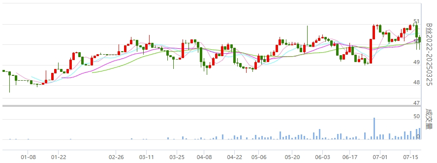 今日(2024年07月18日,周四)中國繭絲綢交易市場生絲電子指數(shù)下跌0.21%報5047.42點。B絲2022D(商檢4A級生絲):240725合約報平收于50.85萬元;240925合約下跌0.69萬元報收于50.19萬元;250325合約下跌0.24萬元報收于50.13萬元。B絲40/44-240725合約報平收于48.54萬元;A絲20/22-240725合約報平收于51.90萬元。(更多行情詳情點擊下方閱讀原文進行查看)