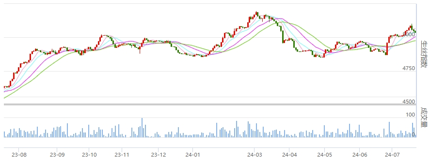 今日(周五)盤面承接昨日走勢,繼續(xù)有所下跌,但下跌幅度有所收窄。主力合約240925和250325生絲合約成交量不及昨日,250325合約倉量略增。本周4A級(jí)生絲指數(shù)收出帶有上影的小陰線。