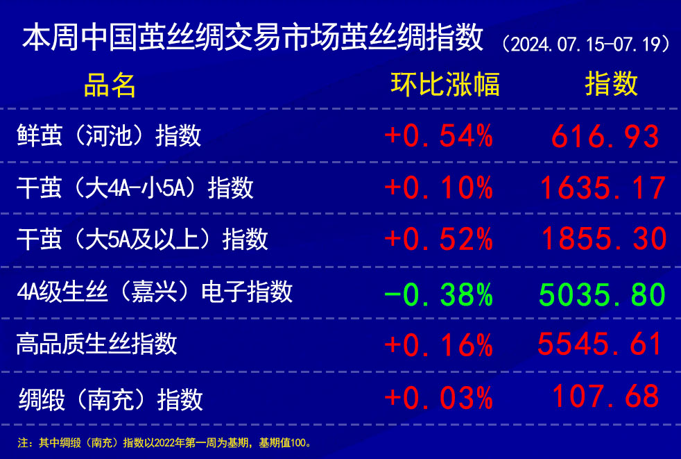 高品質(zhì)生絲指數(shù)上,上周上漲以后,部分協(xié)作單位維持上周價(jià)格成交,部分協(xié)作單位在前期沒漲價(jià),本周有所上調(diào)。整體上,本周高品質(zhì)生絲價(jià)格指數(shù)環(huán)比上周略上漲。