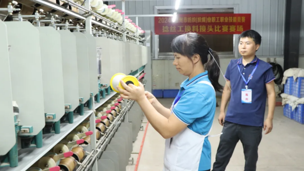 為了推動絲綢文化和技能的傳承與發(fā)展,本次大賽綜合了傳統(tǒng)的技能比拼和現(xiàn)代技術的展示,共設置有:打結比賽;斷頭接經(jīng)的處理比賽;穿經(jīng)、關筘的速度和質(zhì)量比賽;并絲工的清頭、接頭比賽;絡絲工上料接頭比賽和捻絲工換料接頭比賽共6個項目。本次賽事共有80多名選手角逐賽場,共同交流經(jīng)驗,盡情展現(xiàn)新時代勞動者的風采。