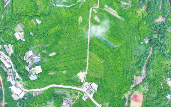 俯瞰桑園。近年來,蠶桑產(chǎn)業(yè)已成為鹽邊縣五大主導產(chǎn)業(yè)之一,年綜合產(chǎn)值約28億元