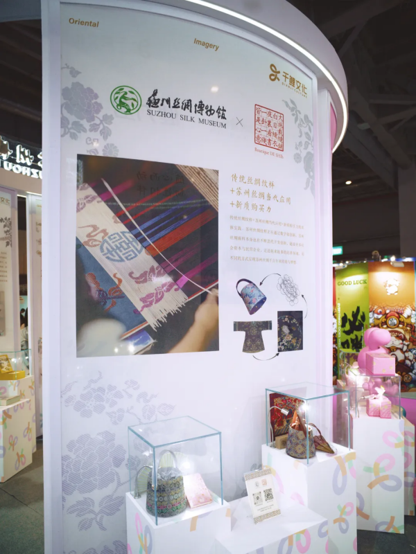 近年來,蘇州絲綢博物館積極探索國有事業(yè)、國有企業(yè)、民營企業(yè)“1+1+N”的IP授權(quán)模式。本次展會(huì),蘇州絲綢博物館現(xiàn)場展示了由千鯉文化代理的IP授權(quán)項(xiàng)目。千鯉文化是國內(nèi)專注版權(quán)運(yùn)營的品牌管理公司,2021年成為蘇州絲綢博物館IP版權(quán)運(yùn)營方,圍繞館藏資源和非遺技藝,開發(fā)二十多套主題圖庫,應(yīng)用于市場品牌合作,為傳播蘇州絲綢文化、培育博物館品牌價(jià)值進(jìn)行市場化創(chuàng)意賦能。