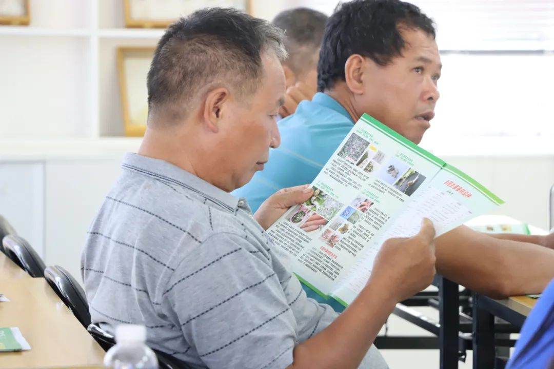 培訓(xùn)班邀請來賓市農(nóng)業(yè)科學(xué)院副院長羅平向蠶農(nóng)傳授科學(xué)化、實用化種桑養(yǎng)蠶技術(shù),課程以“蠶桑省力高效種養(yǎng)關(guān)鍵技術(shù)”為主題,利用圖文和案例,講解如何適度施肥、修剪桑枝、科學(xué)灌溉等桑園管理的具體方法。針對蠶農(nóng)提出的養(yǎng)蠶環(huán)境消毒、石灰配比等問題,技術(shù)人員積極為蠶農(nóng)答疑解惑,現(xiàn)場氣氛熱烈。