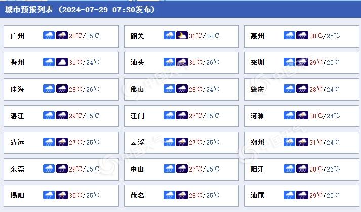 廣東各城市天氣預(yù)報。(來源:中國天氣網(wǎng))