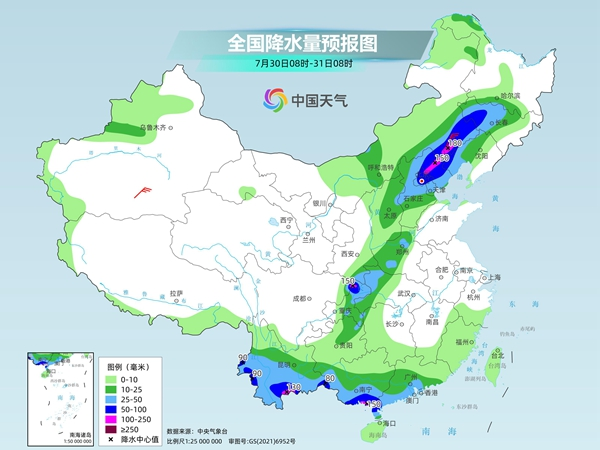 今明兩天,處于副熱帶高壓邊緣的重慶、陜西和華北、東北一帶強(qiáng)降雨頻繁,同時在強(qiáng)盛的偏南季風(fēng)環(huán)流影響下,云南和華南等地雨勢也較強(qiáng),上述部分地區(qū)可達(dá)暴雨或大暴雨量級。