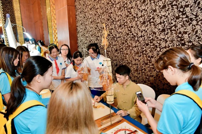 成都市非遺保護中心精選蜀繡、成都糖畫、成都皮影戲等互動性強、觀賞性高、短時間內可出成果的非遺項目進行互動體驗,傳承人現場教授華裔青少年非遺技藝,跨越了語言的界限,讓心靈得以深度交流與共鳴。