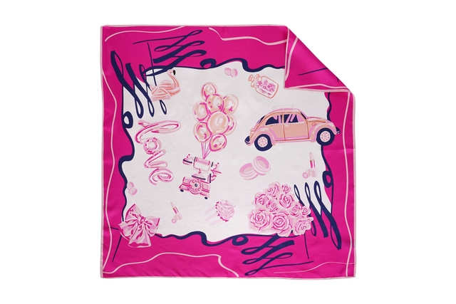 芭比系列主題絲巾—甜心的約會(huì),素材由萬(wàn)事利絲綢提供