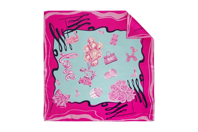 芭比系列主題絲巾—粉紅氣球,素材由萬(wàn)事利絲綢提供