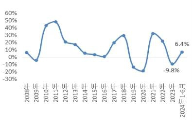 2024年上半年,宏觀政策效應(yīng)持續(xù)釋放、外需有所回暖、新質(zhì)生產(chǎn)力加速發(fā)展等因素支撐國(guó)民經(jīng)濟(jì)延續(xù)恢復(fù)向好態(tài)勢(shì),實(shí)現(xiàn)國(guó)內(nèi)生產(chǎn)總值同比增長(zhǎng)5.0%。在此背景下,化纖行業(yè)運(yùn)行呈現(xiàn)恢復(fù)性增長(zhǎng)態(tài)勢(shì)。具體來看,產(chǎn)量在低基數(shù)基礎(chǔ)上同比快速增長(zhǎng),增速逐步回落;開工負(fù)荷總體處于高位,下游需求好于同期;經(jīng)濟(jì)效益同比大幅提升,運(yùn)行質(zhì)量改善;固定資產(chǎn)投資增速回升,實(shí)際新增產(chǎn)能放緩。但受貿(mào)易壁壘、地緣沖突等影響,化纖出口量有所下滑。