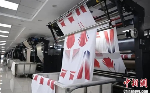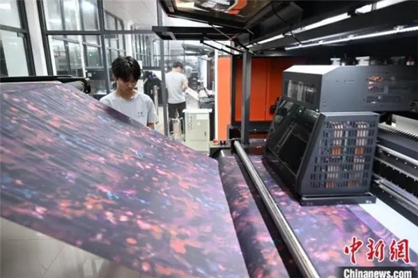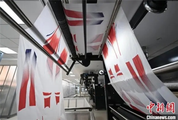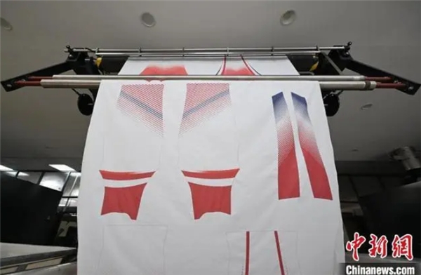 8月8日,紹興乾雍紡織有限公司內(nèi),自動化設備正在打印加拿大體育代表團服飾面料印花,應對補單需求。該企業(yè)自2018年開始做功能性面料,通過借力人才和科技,其設備在打印中國體育代表團和加拿大體育代表團服飾印花時,智能算法控制的每平方米噴墨量精準度達到萬分之一毫升級別。近日,巴黎奧運會正在舉辦中,而中國體育代表團和加拿大體育代表團的部分服飾,即來自于“國際紡都”浙江紹興柯橋的多家企業(yè)。8日,記者走進柯橋,探訪這些企業(yè)的轉(zhuǎn)型發(fā)展之路,以及奧運相關服飾產(chǎn)品的生產(chǎn)線。中新社記者 王剛 攝