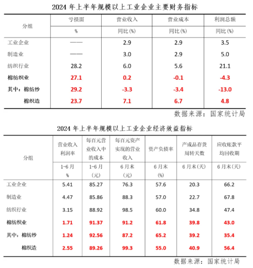 上半年數(shù)據(jù)顯示,與規(guī)上工業(yè)、制造業(yè)和紡織行業(yè)相比,規(guī)上棉紡織業(yè)營收增速明顯偏弱,利潤增速呈現(xiàn)背離同比下降,資產(chǎn)負(fù)債率處于更高水平,產(chǎn)成品庫存壓力更大,上半年棉紡織經(jīng)濟(jì)運(yùn)行承壓明顯。