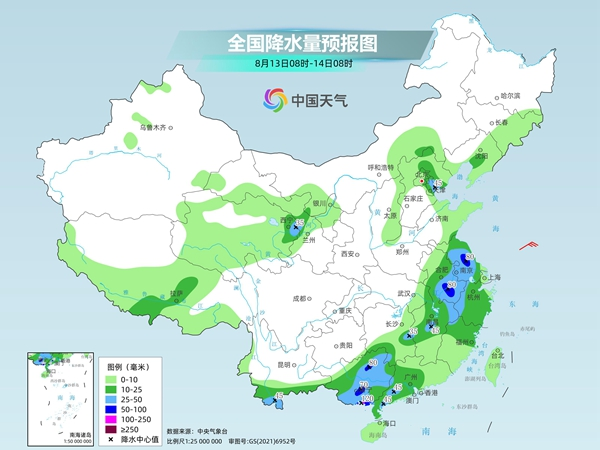 昨天,我國降雨主要出現(xiàn)在東北、華北北部、江南、華南等地。監(jiān)測顯示,昨天8時至今天6時,廣西東部和北部、廣東、海南島東部、臺灣島東部、湖南中南部、江西、福建南部、蘇皖南部、上海、浙江中北部及河北東北部、天津、內(nèi)蒙古東南部、遼寧中部和遼東半島等地出現(xiàn)分散性大到暴雨,局地大暴雨。