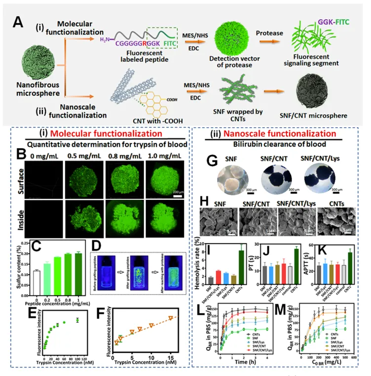 圖4 用于分子診斷和血液凈化的SNF微球功能化研究