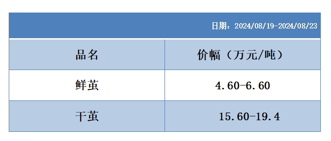 根據(jù)本周蠶繭報價按照指數(shù)方案形成的基準品價格區(qū)間