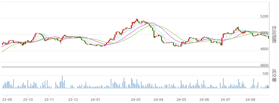 今日(周一)盤面生絲各遠近合約繼續(xù)小幅盤整,240925合約繼續(xù)有所減倉,250325合約在波動中繼續(xù)有所增倉。