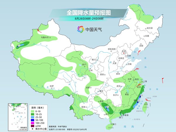 后天,新疆沿天山地區(qū)及南疆盆地西部、內(nèi)蒙古東北部、黑龍江南部、福建東南部、廣東中南部、貴州南部、廣西西部和南部等地有中雨,部分地區(qū)有大雨(25~40毫米)。