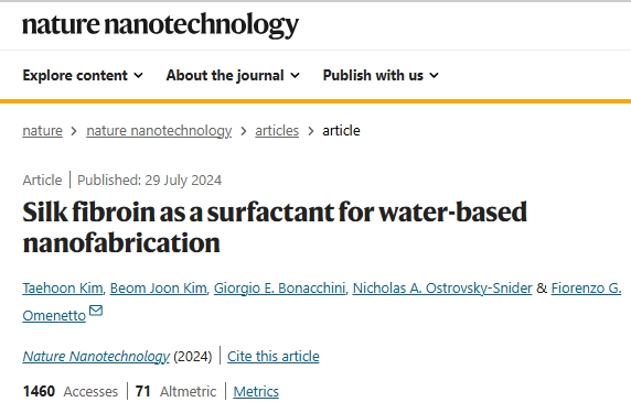 Kim, T., Kim, B.J., Bonacchini, G.E. et al. Silk fibroin as a surfactant for water-based nanofabrication. Nat. Nanotechnol[J], 1748-3395(2024).