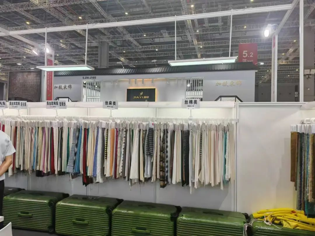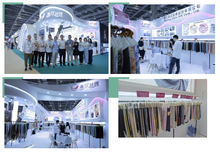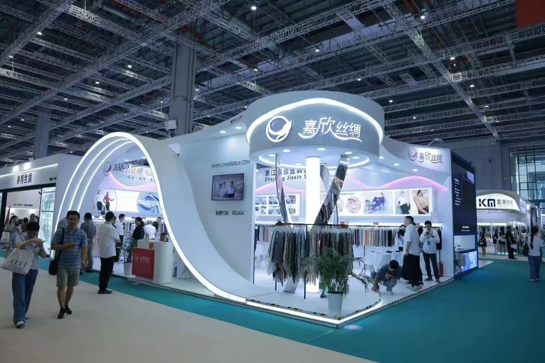 本次展會(huì)上,嘉欣絲綢的展位由面料出口總部板塊、金三塔絲針織板塊和特欣織造板塊精心組成。