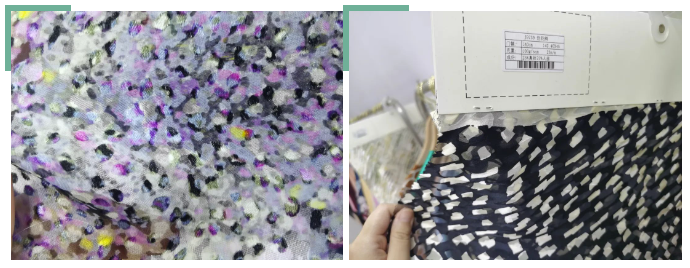 展位上,有一款特色產(chǎn)品:爛花綃印花爛花。它是由真絲和人絲織造形成的真絲爛花綃,底層是真絲,面上是人絲,面料在經(jīng)過煉白、爛花等幾個(gè)工藝后,成品富有凹凸感,比普通提花更有層次感。選擇最適合自己的賽道,這是我們所應(yīng)該學(xué)習(xí)的。