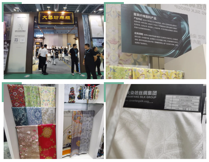 淄博大染坊絲綢集團(tuán)有限公司是全國寬幅真絲家紡面料的龍頭企業(yè),集團(tuán)公司注冊商標(biāo)“諾寶?絲邦”是山東省老字號(hào)。公司在廣西南寧市上林縣、梧州市蒙山縣分別建有繅絲原料生產(chǎn)基地及絲綢織造基地。淄博大染坊絲綢集團(tuán)有限公司的展位上,除了傳統(tǒng)的優(yōu)勢產(chǎn)品外,獲得專利的菌草纖維與蠶絲交織的面料等系列產(chǎn)品非常吸引眼球。