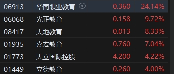 教育股部分爆發(fā),華南職業(yè)教育漲超24%。消息面上,中共中央、國務院26日發(fā)布關于弘揚教育家精神加強新時代高素質(zhì)專業(yè)化教師隊伍建設的意見,提出到2035年,數(shù)字化賦能教師發(fā)展成為常態(tài)。結合上述消息,也讓市場對教育行業(yè)政策“見底到位”的判斷得到強化。